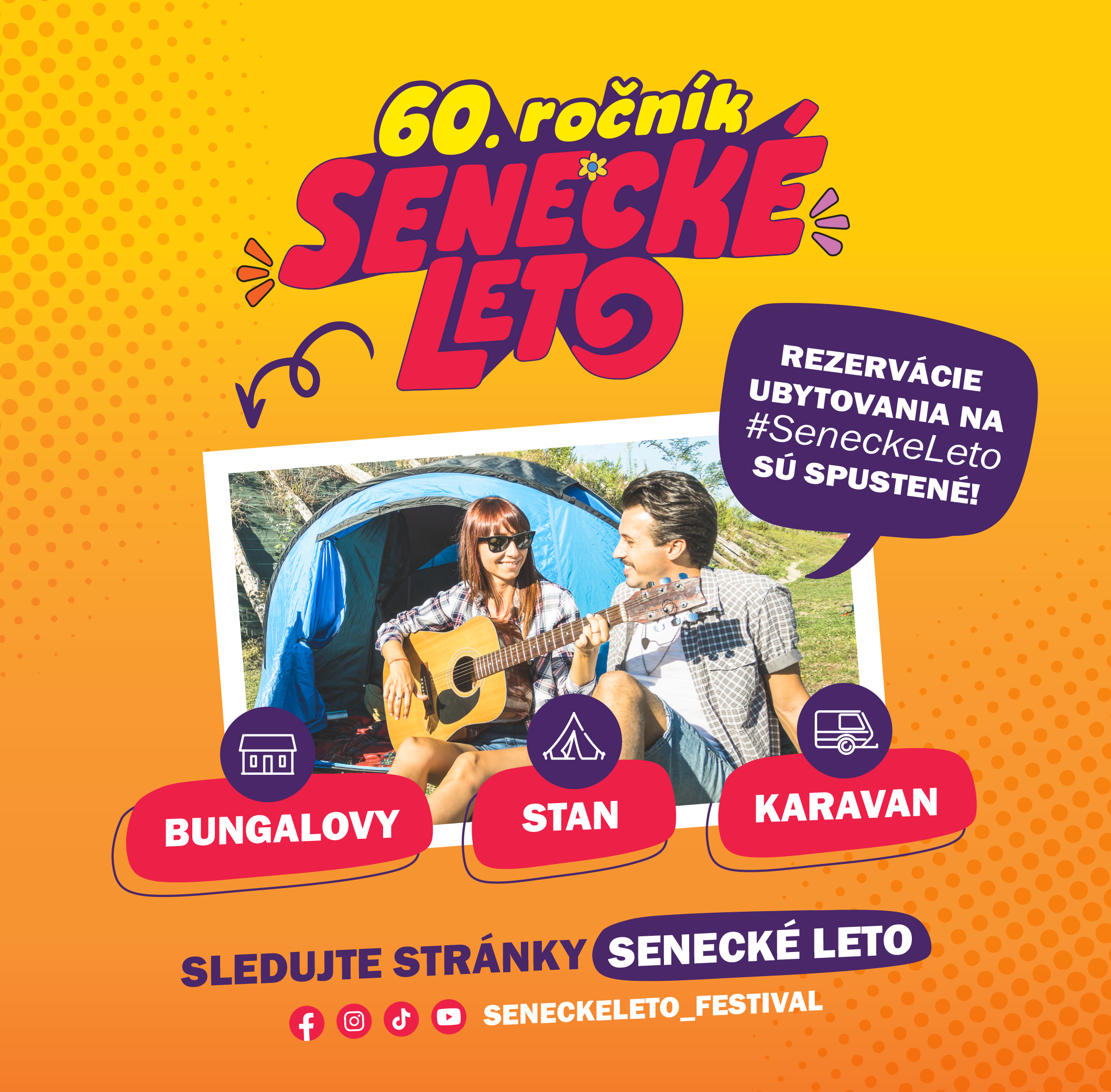 Pre pohodový festivalový víkend ponúkame možnosť rezervovať si stanové aj karavanové miesta vopred. Vstupenky na podujatie Senecké leto si návštevník zabezpečuje samostatne; bez platnej vstupenky nebude umožnený vstup na podujatie.