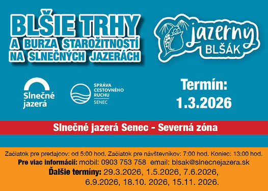 Prvý tohtoročný Jazerný blšák a burza starožitností sa uskutoční 1. 3. 2026 (nedeľa) od 7:00 v Stanovom kempe – Severná zóna, Slnečné jazerá, Senec.